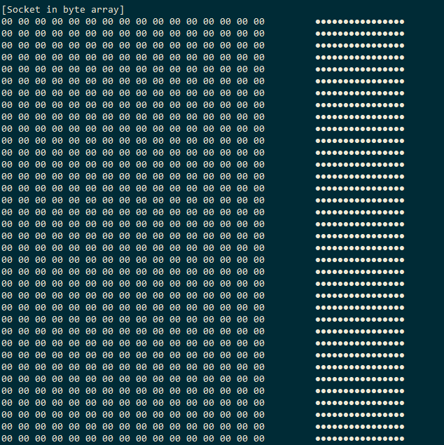 근데 또 소켓 데이터는 byte array 자료형이라, byte array 자료형의 16진수와 그에 맵핑되는 문자들을 편하게 보기위해